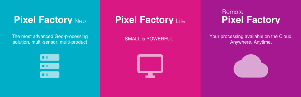 Pixel Factory gives you the power of processing high quality Earth Observation products through a software suite: Pixel Factory Neo, Pixel Factory Lite and Remote Pixel Factory. Compatible with any optical sensor, from satellite to UAVs and aerial images, the Pixel Factory is the best tool to create accurate geospatial products.