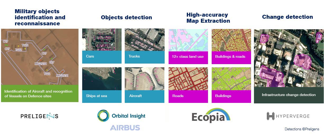 As the most extensive EO constellation operator, Airbus is particularly sensitive to this topic as AI allows to extract insight, more rapidly and on more data. Having this in mind, Airbus has partnered with some key companies to answer the swift data exploitation challenge and in doing so, support companies that are developing these capabilities.