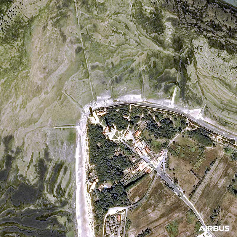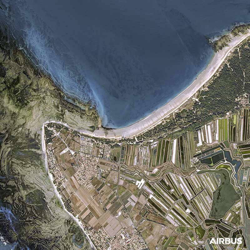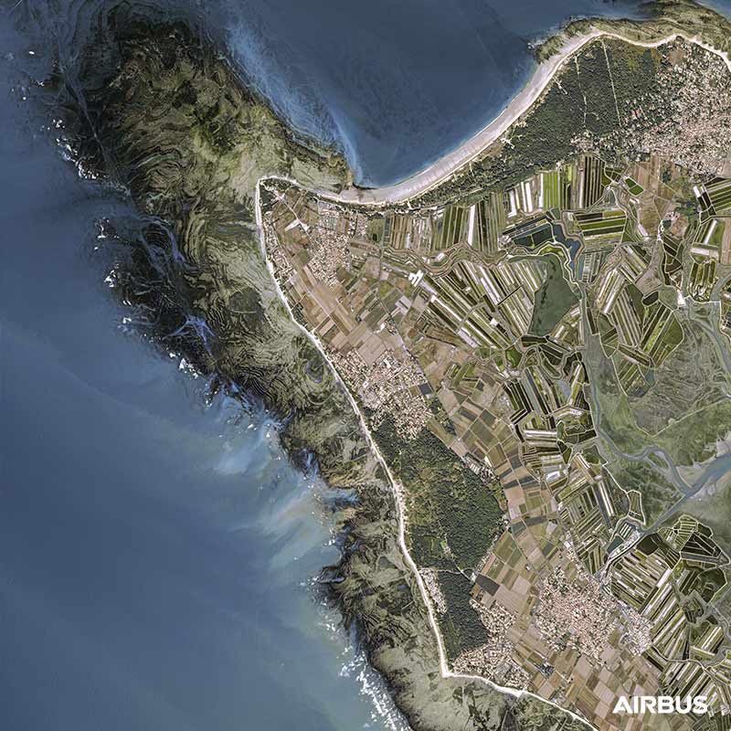 The satellite image provides information on the natural, landscape, human and economic constraints during the construction of equipment or land use planning, but also for the monitoring of these sites. The Lighthouse of Whales on the Ile de Ré in France is at the crossroads of issues: maritime, tourist and climatic risks on the coastline.